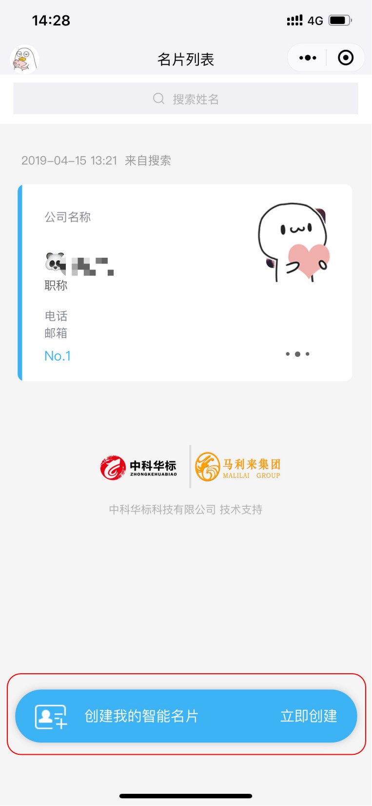 5.保存好以后就可以看到自己的名片啦!