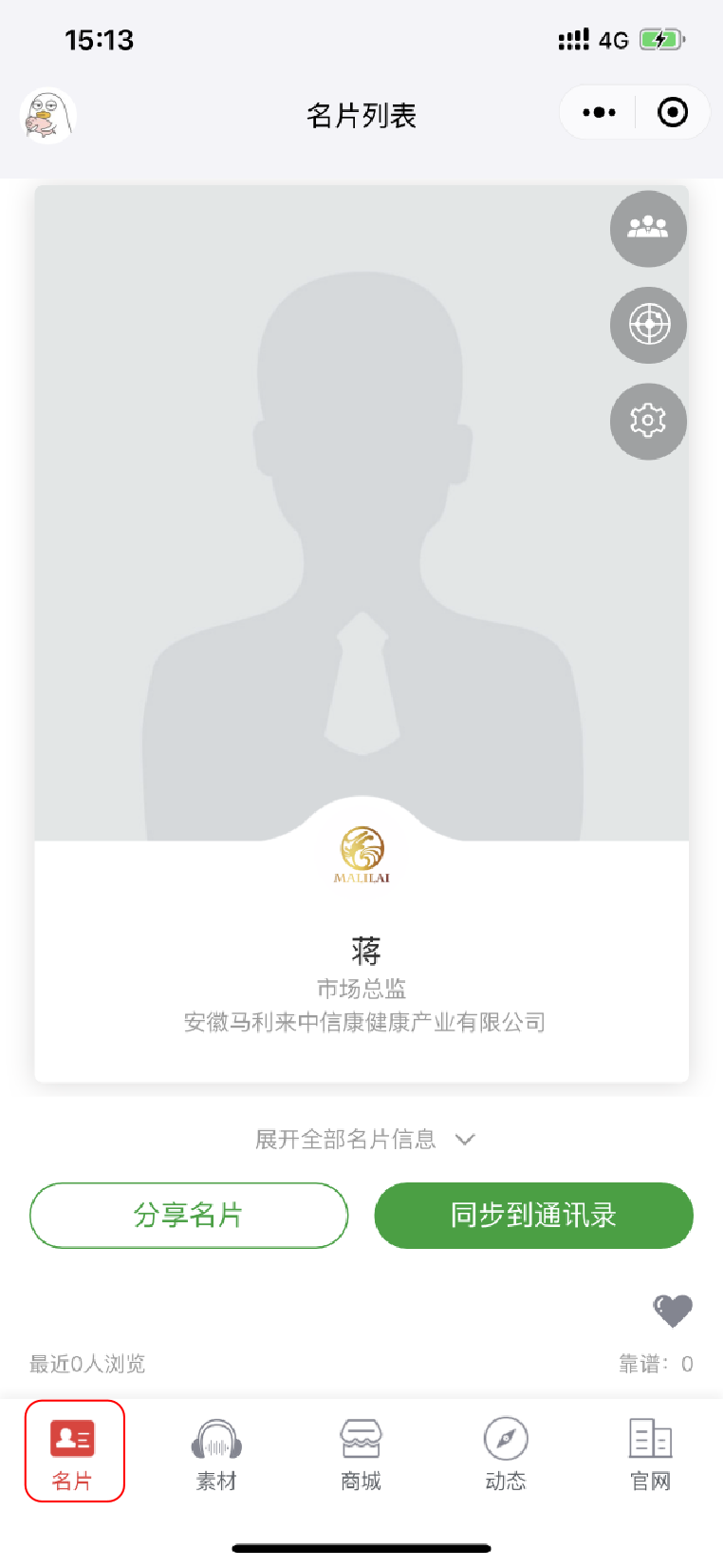 6.试着点击自己刚刚创建好的名片,可以看到更多内容哦!首先看到的是自己的名片信息。