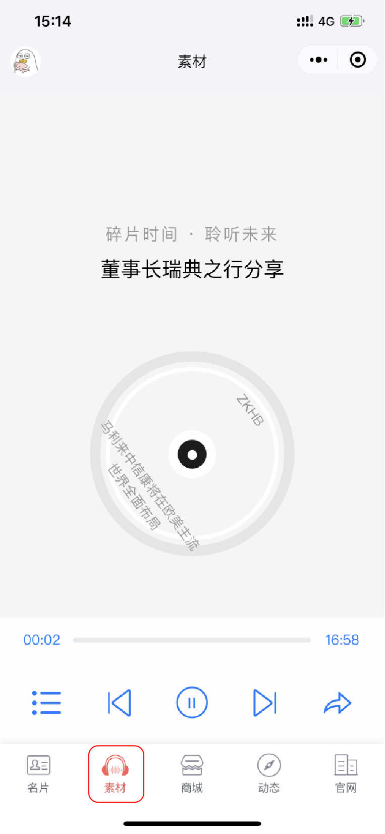 7.点击下方左数第二个按钮“素材”,可以看到马利来中信康的各种音视频素材。